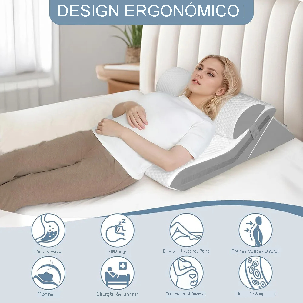 💆 Alívio de Ronco, Refluxo e Dores: Ideal para melhorar a postura ao dormir, auxiliando no combate ao ronco, refluxo ácido, dores nas costas e recuperação pós-cirúrgica.